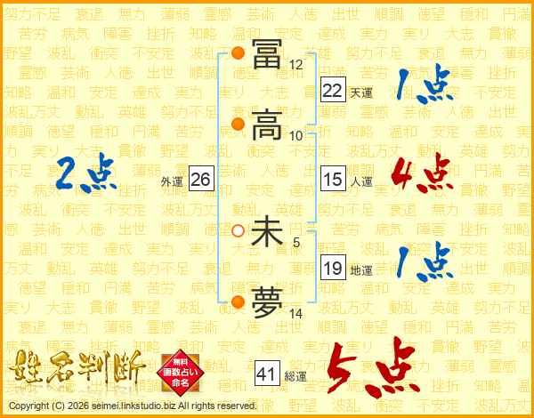 冨高未夢さんの総運は41画の5点!