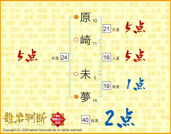 原崎未夢さんの天運は21画の5点!