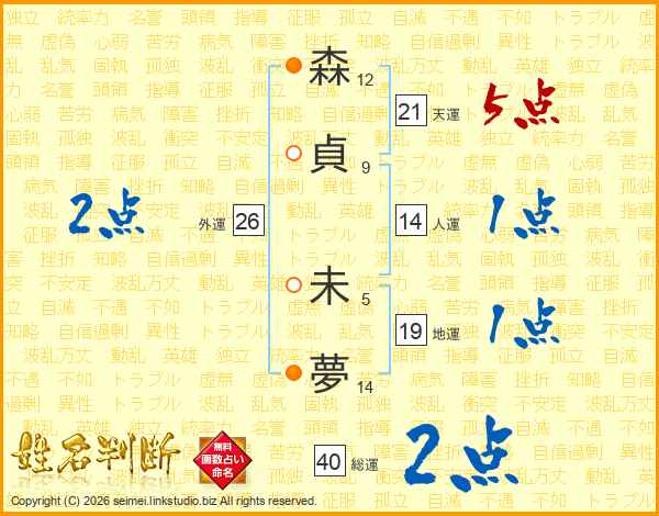 森貞未夢さんの天運は21画の5点!
