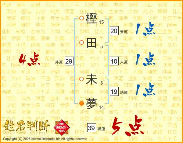 樫田未夢さんの総運は39画の5点!