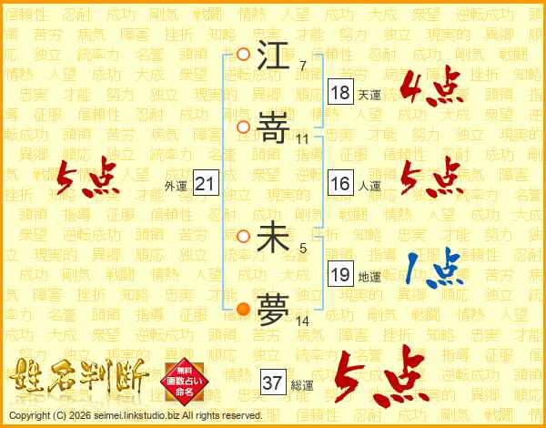 江嵜未夢さんの総運は37画の5点!