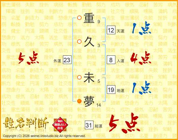 重久未夢さんの総運は31画の5点!