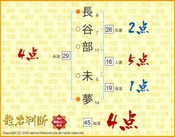 長谷部未夢さんの総運は45画の4点!