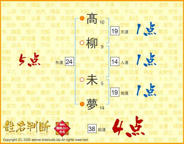 髙柳未夢さんの総運は38画の4点!