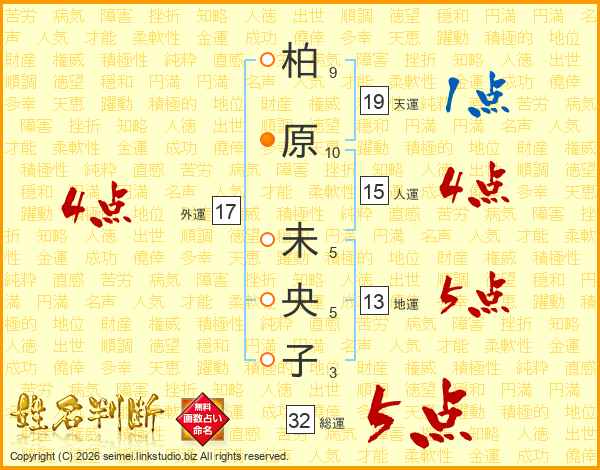 柏原未央子さんの総運は32画の5点!