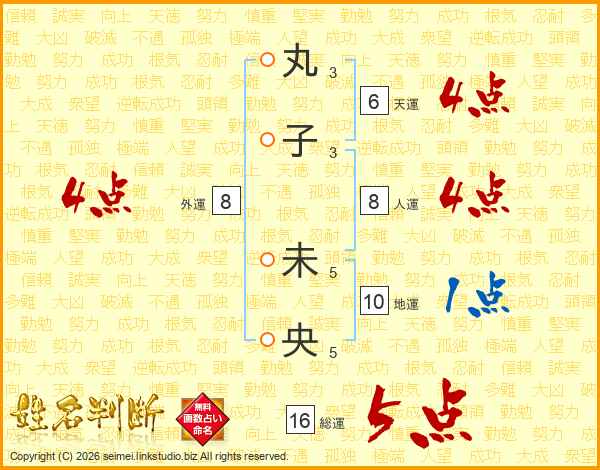 丸子未央さんの総運は16画の5点!