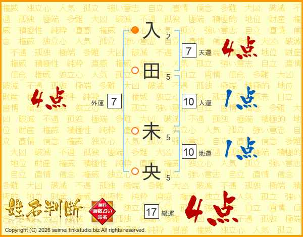 入田未央さんの総運は17画の4点!