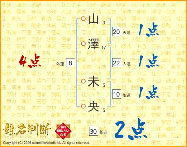 山澤未央さんの総運は30画の2点!
