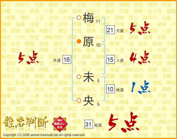 梅原未央さんの総運は31画の5点!