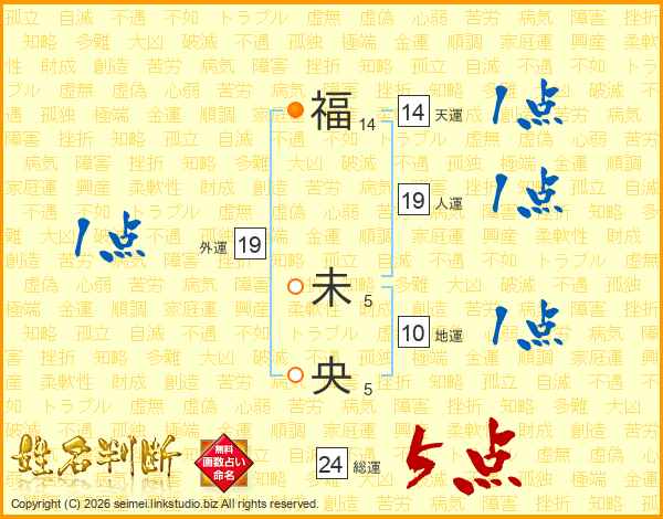福(14画) 未(5画)央(5画)
