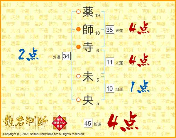 薬(19画)師(10画)寺(6画) 未(5画)央(5画)