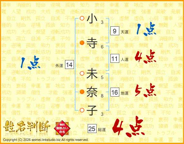 小寺未奈子さんの総運は25画の4点!