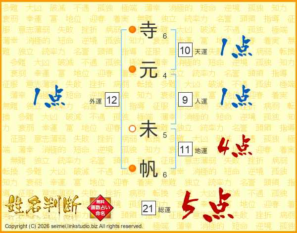 寺(6画)元(4画) 未(5画)帆(6画)