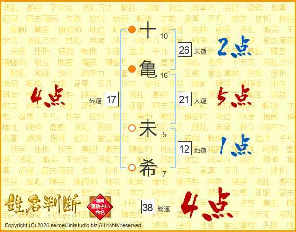 十(10画)亀(16画) 未(5画)希(7画)