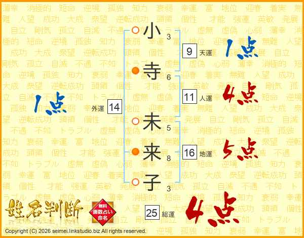 小寺未来子さんの総運は25画の4点!