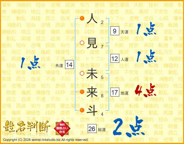 人見未来斗さんの総運は26画の2点!