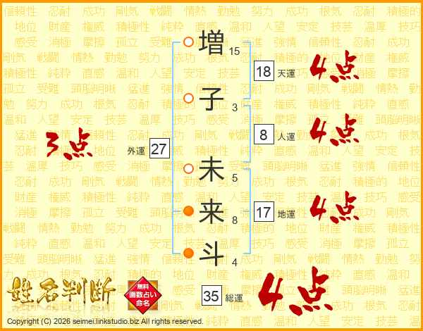 増(15画)子(3画) 未(5画)来(8画)斗(4画)