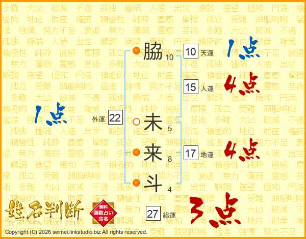 脇(10画) 未(5画)来(8画)斗(4画)