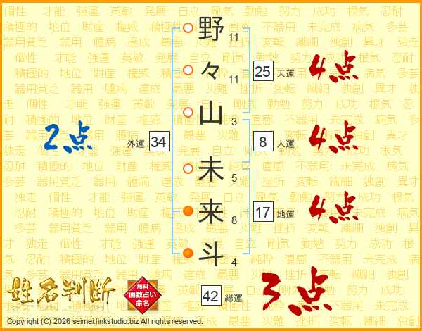 野々山未来斗さんの総運は42画の3点!