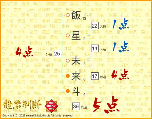 飯星未来斗さんの総運は39画の5点!