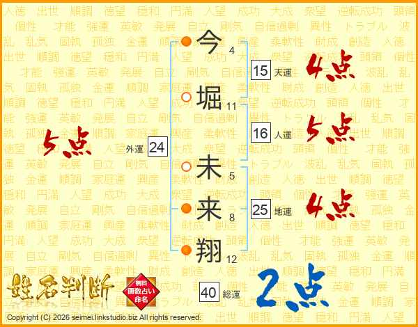 今堀未来翔さんの総運は40画の2点!