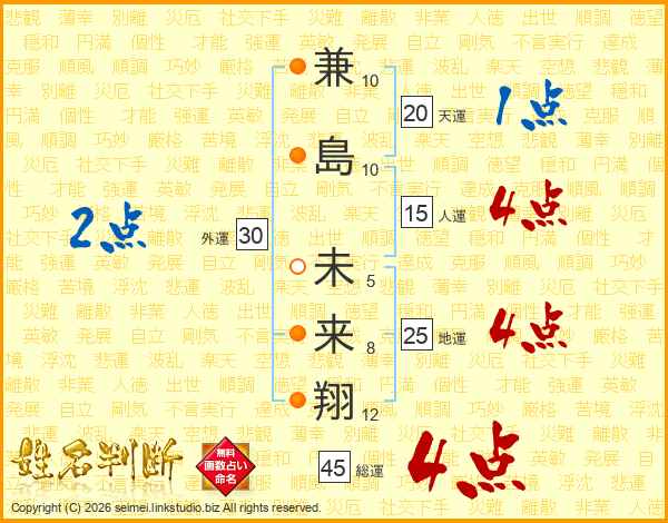 兼島未来翔さんの総運は45画の4点!