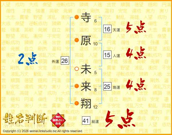 寺原未来翔さんの総運は41画の5点!