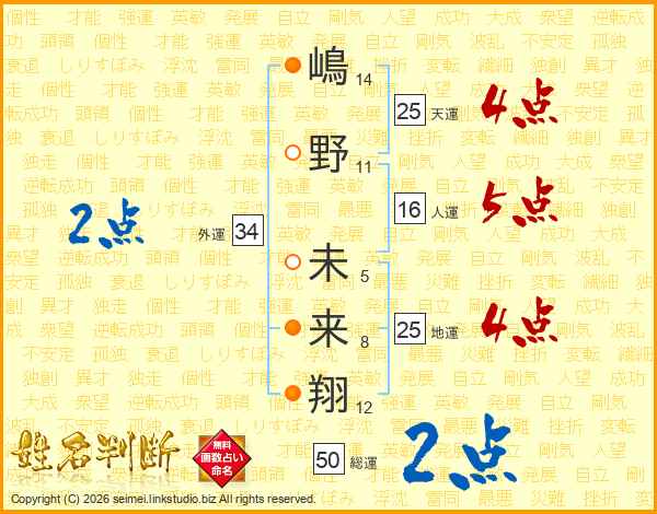 嶋野未来翔さんの天運は25画の4点!