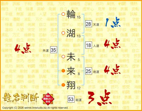 輪湖未来翔さんの総運は53画の3点!