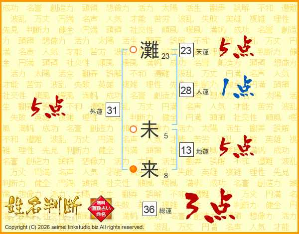灘未来さんの総運は36画の3点!
