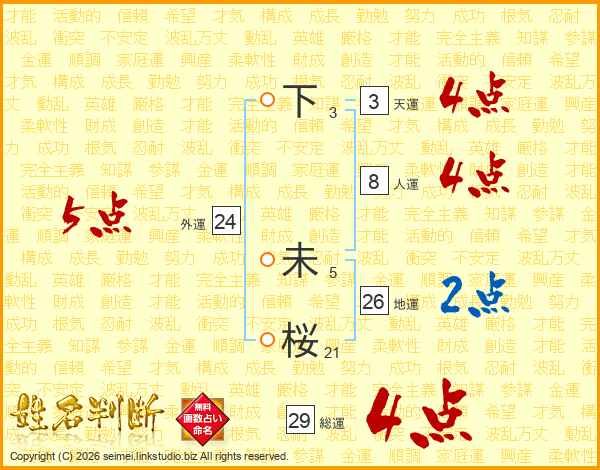 下未桜さんの総運は29画の4点!