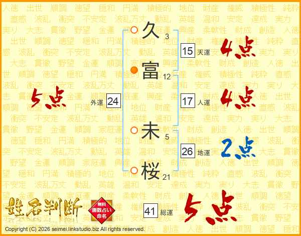 久富未桜さんの地運は26画の2点!