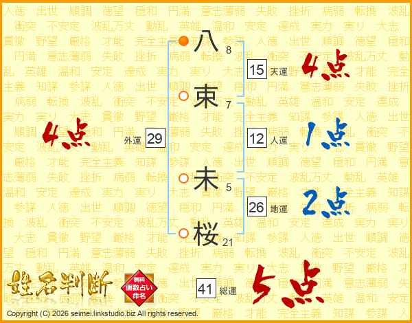 八(8画)束(7画) 未(5画)桜(21画)