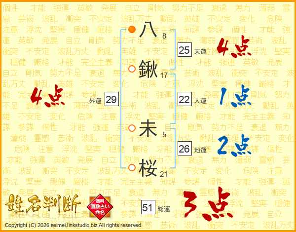 八鍬未桜さんの地運は26画の2点!