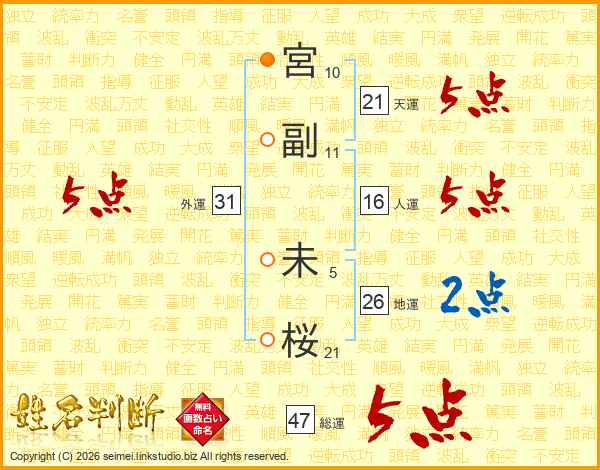 宮副未桜さんの天運は21画の5点!