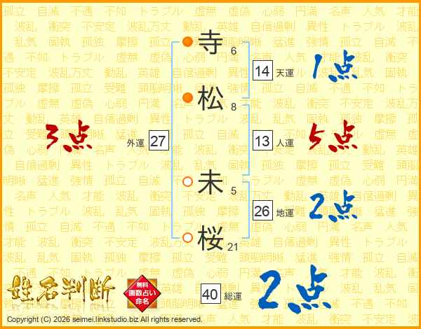 寺松未桜さんの天運は14画の1点!
