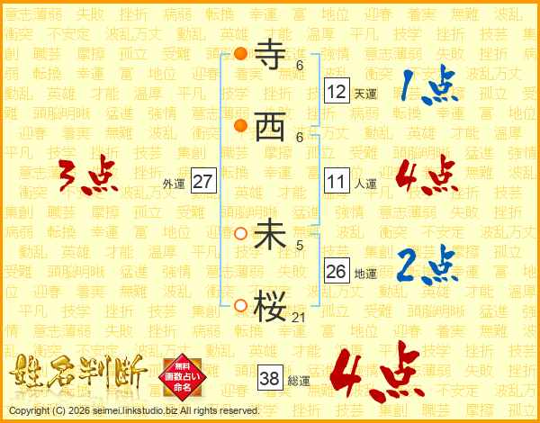 寺西未桜さんの総運は38画の4点!