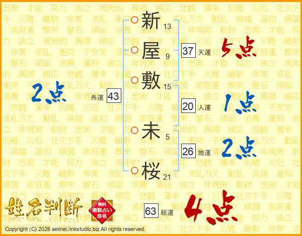 新屋敷未桜さんの総運は63画の4点!