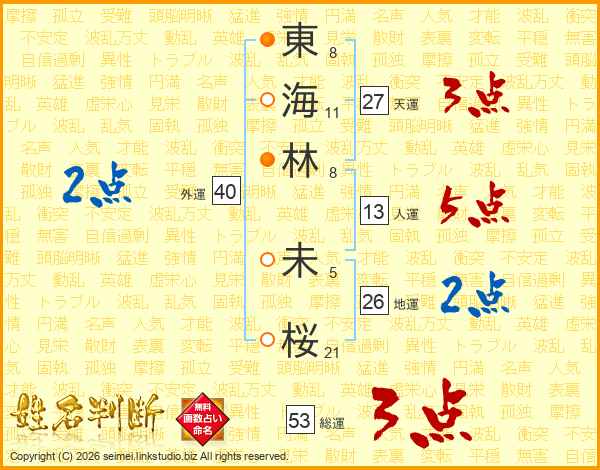 東(8画)海(11画)林(8画) 未(5画)桜(21画)