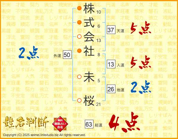 株(10画)式(6画)会(13画)社(8画) 未(5画)桜(21画)