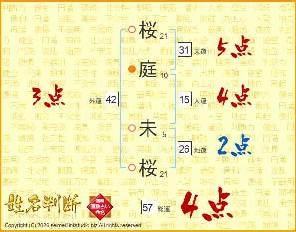桜(21画)庭(10画) 未(5画)桜(21画)