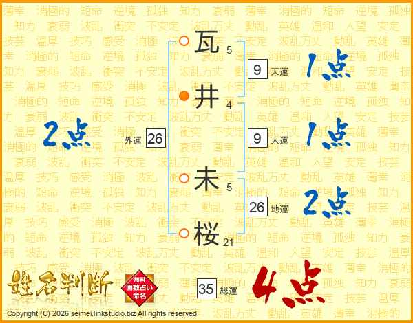 瓦井未桜さんの地運は26画の2点!