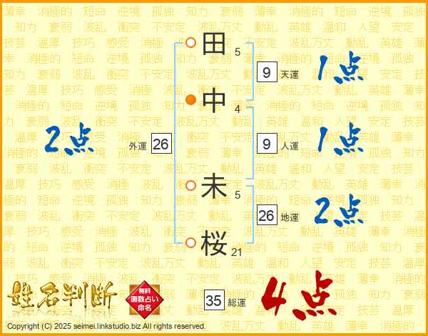田中未桜さんの地運は26画の2点!