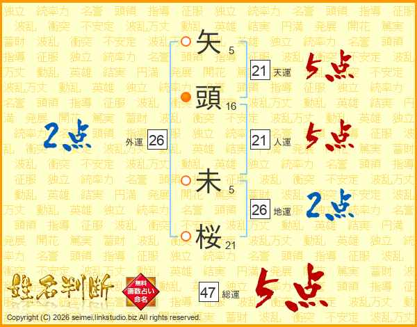 矢(5画)頭(16画) 未(5画)桜(21画)