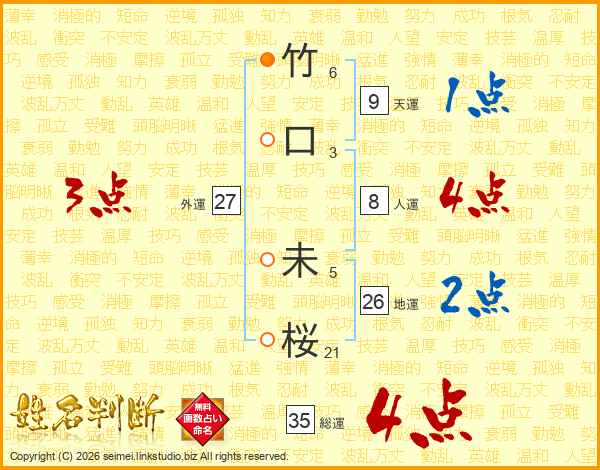 竹口未桜さんの地運は26画の2点!