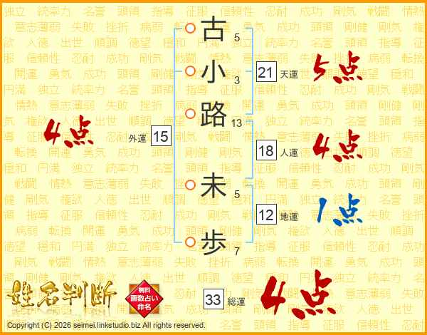 古小路未歩さんの総運は33画の4点!