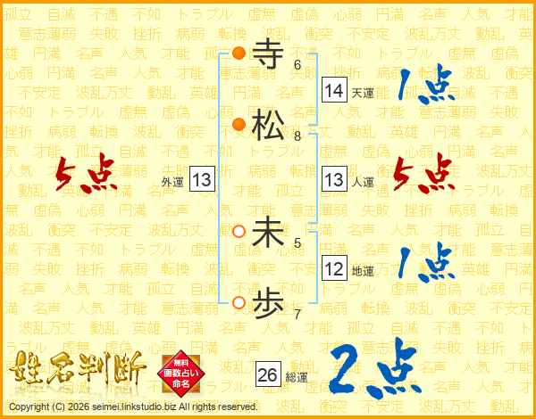 寺松未歩さんの総運は26画の2点!