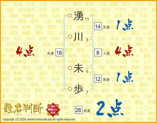湧川未歩さんの総運は26画の2点!