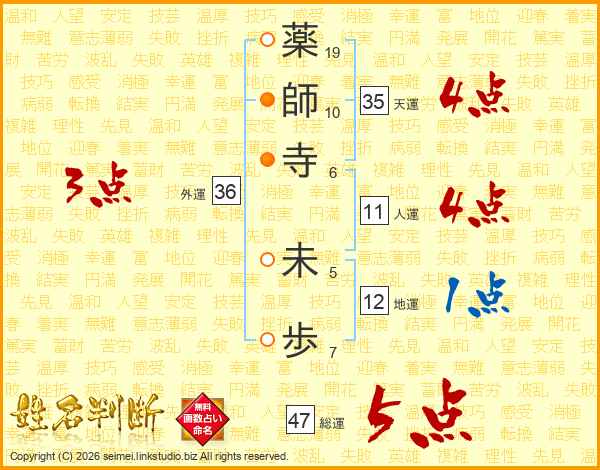 薬師寺未歩さんの総運は47画の5点!