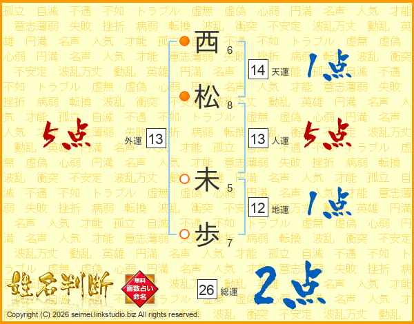 西(6画)松(8画) 未(5画)歩(7画)